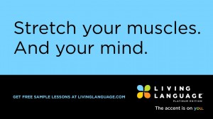 How are your New Year’s resolutions holding up? Not only does learning a new language enhance travel and bring people closer together, but it’s great for your health as well. Based on on recent articles from ABC and BBC, Living Language is promoting the health benefits of language learning in gyms this month in D.C. and New York. Check out the ads below. We’d love to hear how your progress on your 2012 language goals, comment on this post or write on our Facebook wall!