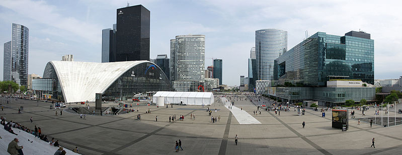 Set at the westernmost extremity of the famous Axe historique (Historical Axis), which comprises the Louvre, the Champs-Élysées and the Arc de Triomphe, La Défense positions itself as the largest and foremost European business district. The name comes from the statue of La Défense, which commemorates the Parisian resistance during the Franco-Prussian War.
