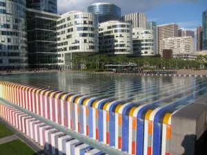 At the foot of the Grande Arche is an esplanade called Le Parvis. This public space reserved for pedestrians includes a vast “dalle”(flat slab) of 70 acres, an urban design with suspended gardens, museums, restaurants, as well as over sixty of modern art pieces with works of Joan Miró, César, Takis, and Agam, and piece of the Berlin Wall.