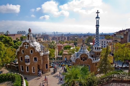 El Parque Güell, Barcelona, is a beautiful complex of gardens and buildings designed by the architect Antoni Gaudí and was constructed in 1900. Like most of his work, the entrance buildings have fantastical roofs and multicolored mosaics made of ceramic pieces. My favorite point of the park is the terrace which is surrounded by a long bench in the form of a sea serpent. The park supports the largest community of wild parrots in Barcelona. [Map]
