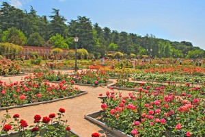 La Rosaleda, Madrid. La Rosaleda, Garden of Roses, is a beautiful landscape to visit during the bloom season, from spring to summer. It is located inside a larger park called el Parque del Oeste(West Park), situated in the west side of Madrid. The colors and the smells of thousands of roses of many different varieties will take over the visitor’s senses. Every year during the month of May a rose festival is celebrated - a contest to choose the most beautiful rose of all. [Map]