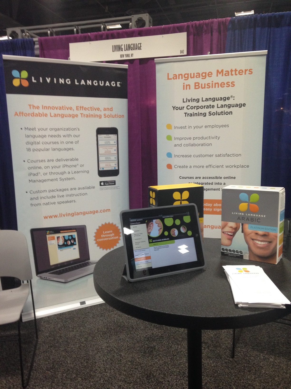 Living Language was proud to be an exhibitor at the ASTD Conference last month in Washington, D.C. What an exciting show! We were thrilled to meet with a wide variety of vendors, universities, HR buyers and personal language enthusiasts. Live demos of Living Language’s online courses and mobile applications kept our booth busy, and we were excited to share the news of the courses’ new LMS compatibility; we’re always looking for new ways to be the most flexible and efficient language training program in the industry. For more info on our corporate sales, please contact us.